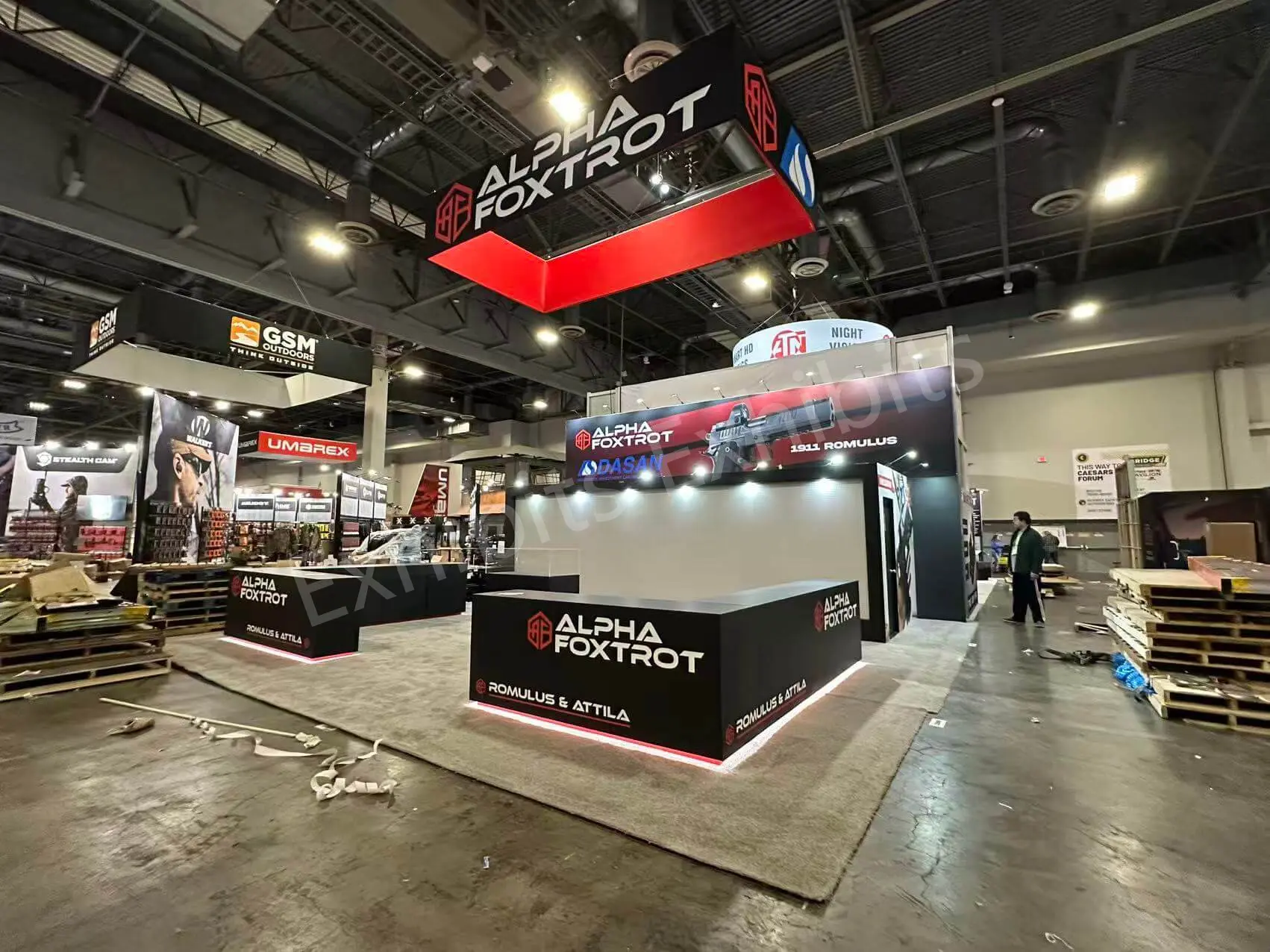 Aplus Exhibits presents a premium 20’x30′ trade show booth for Alpha foxtrot at Shot show 2026.