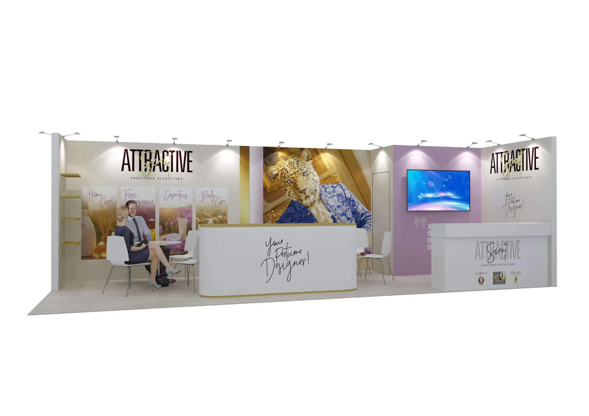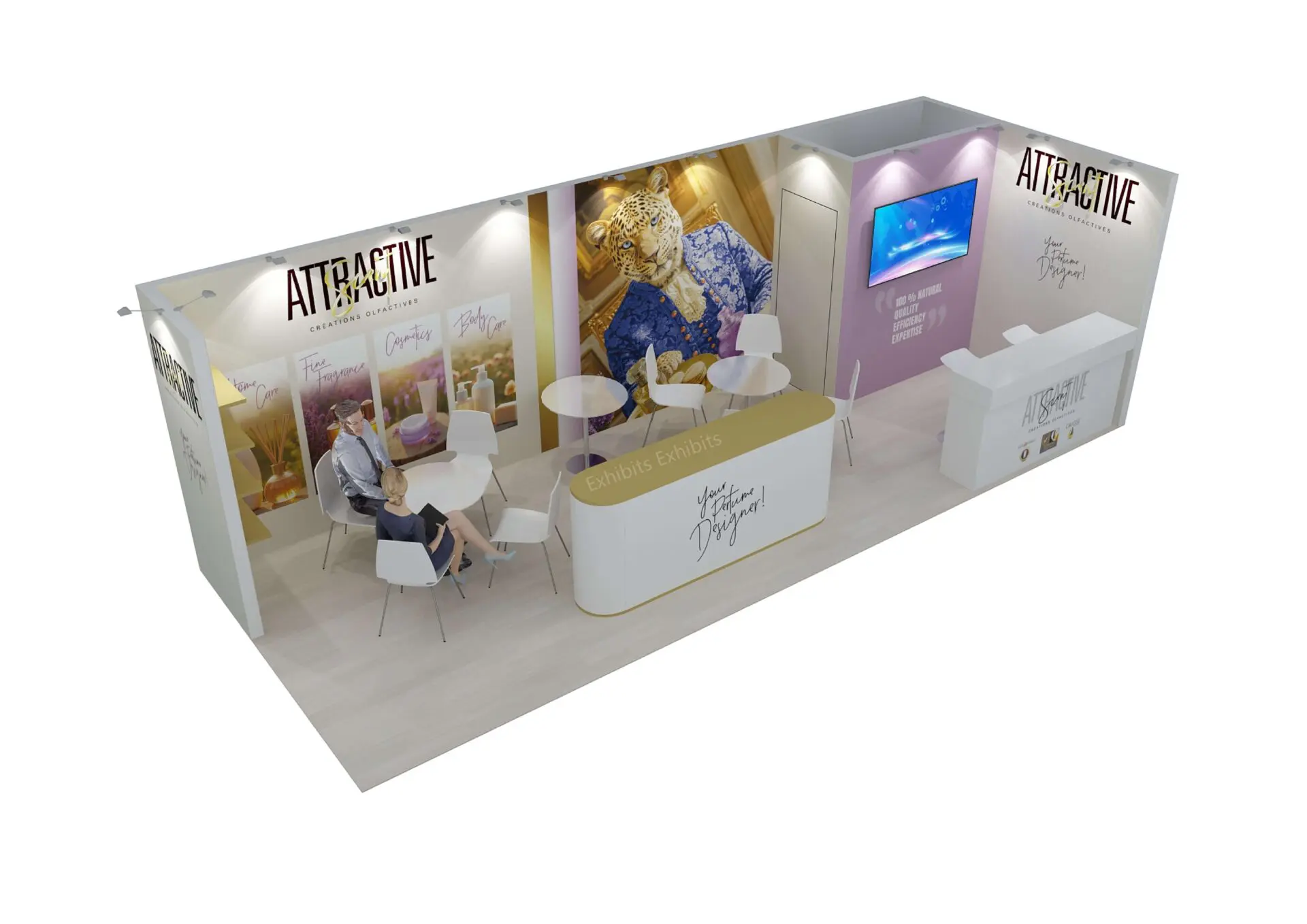 Aplus Exhibits presents a premium 10′ x 20′ trade show booth for ATTRACTIVE SCENT at Cosmoprof miami 2026.