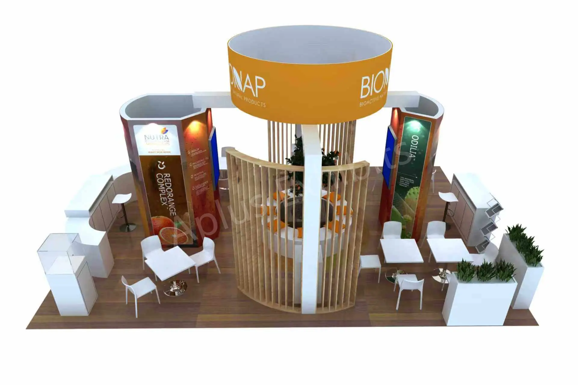 Aplus Exhibits presents a premium 20′ x 30′ trade show booth for Bionap at SSG 2025.