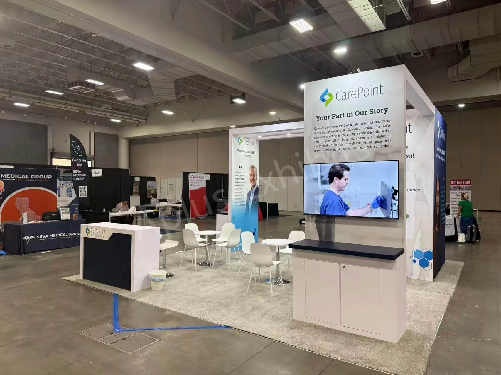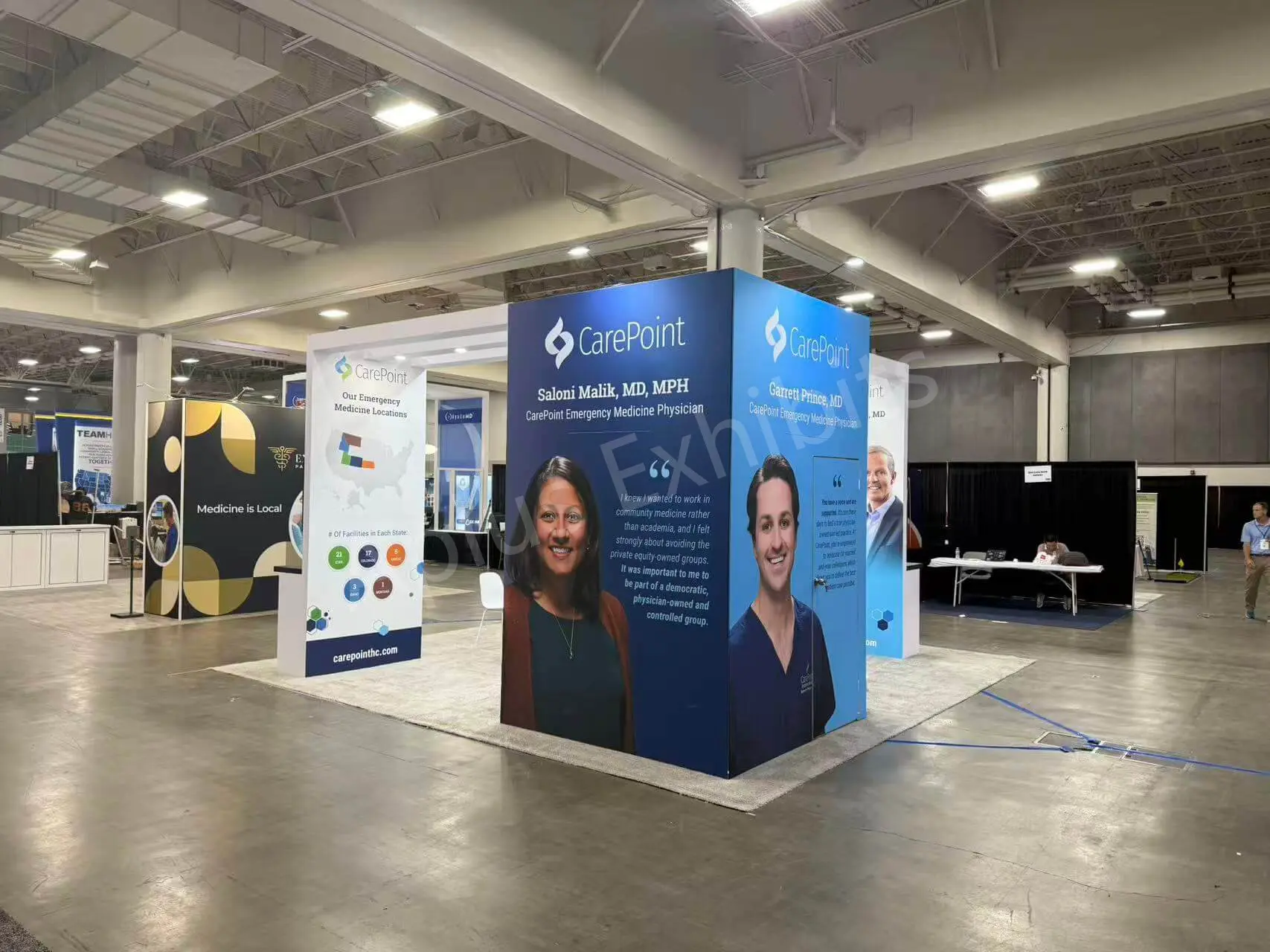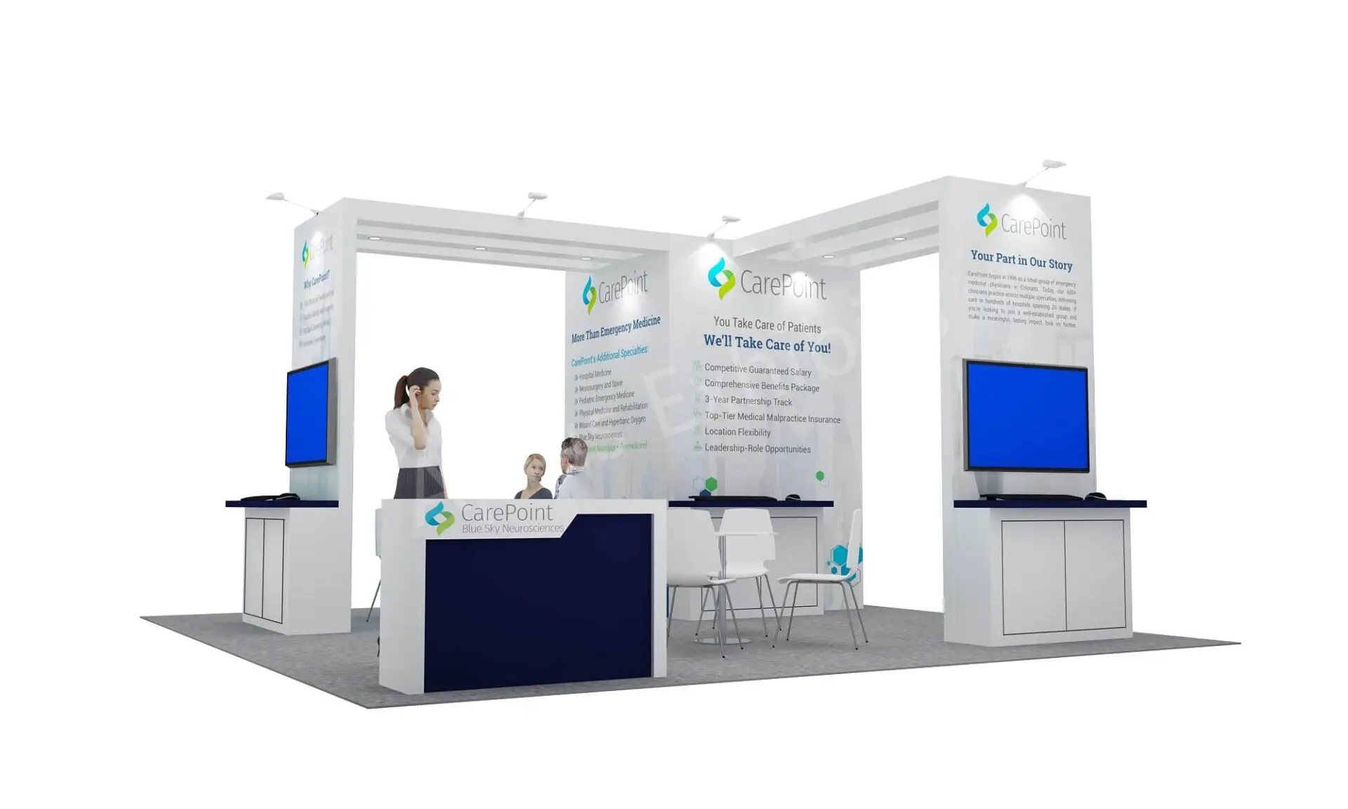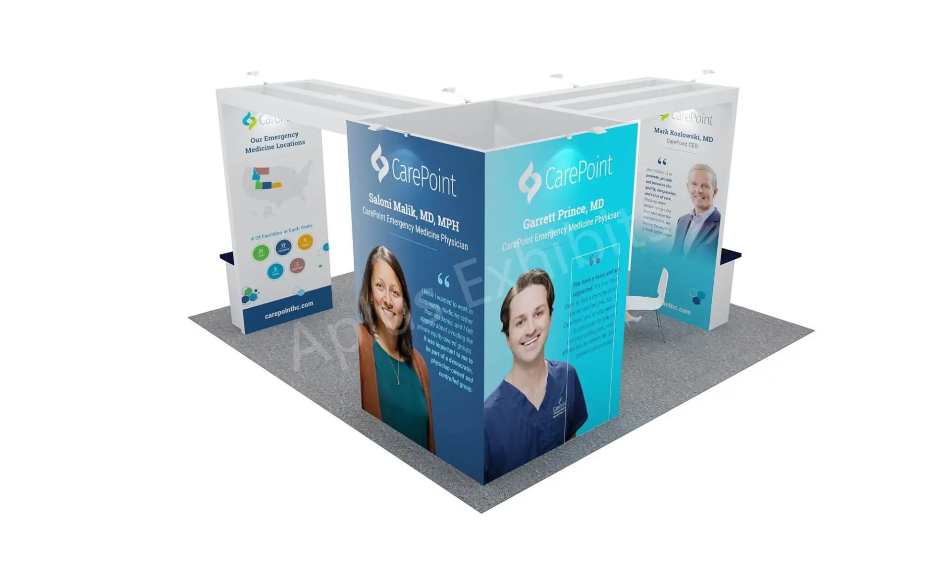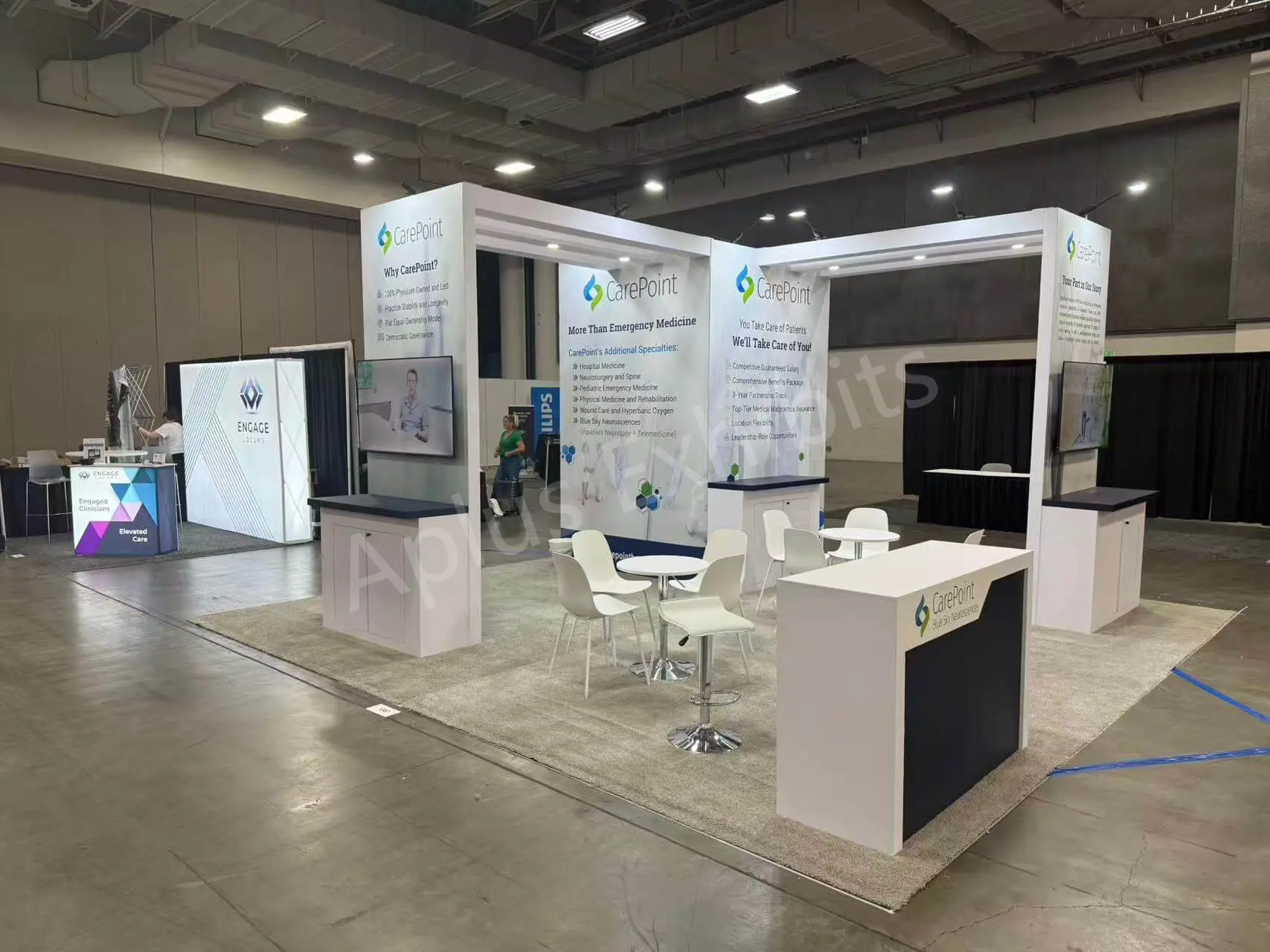 Aplus Exhibits presents a premium 20′ x 20′ trade show booth for CarePoint at ACEP 2025.
