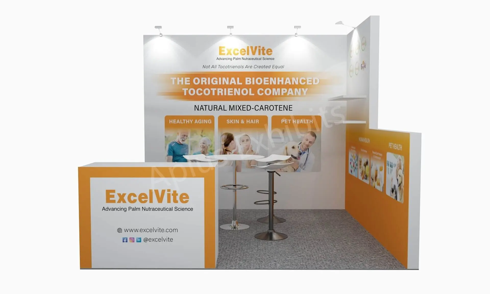 Aplus Exhibits presents a premium 10′ x 10′ trade show booth for ExcelVite at SSG 2025.