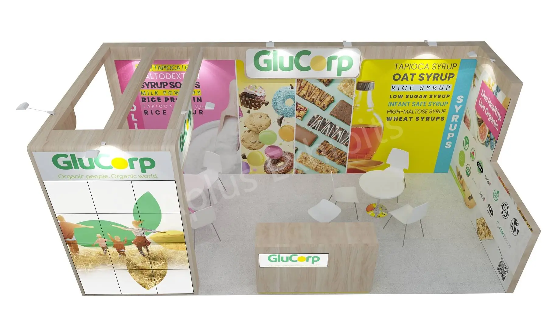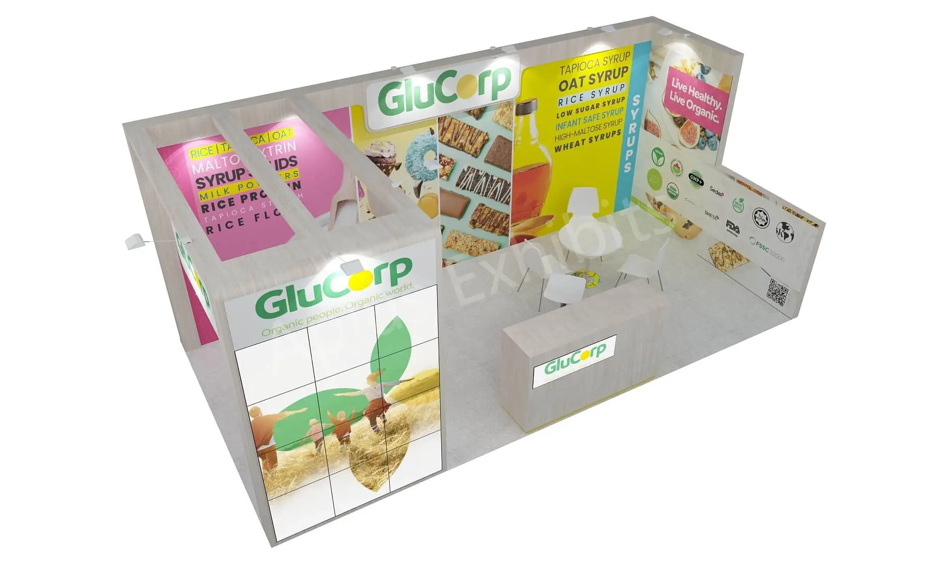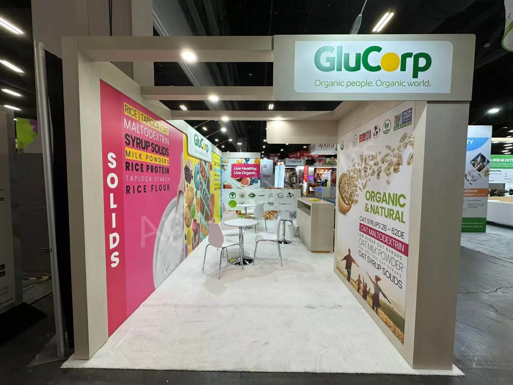 Aplus Exhibits presents a premium 10′ x 20′ trade show booth for Glucorp at SSG 2025.