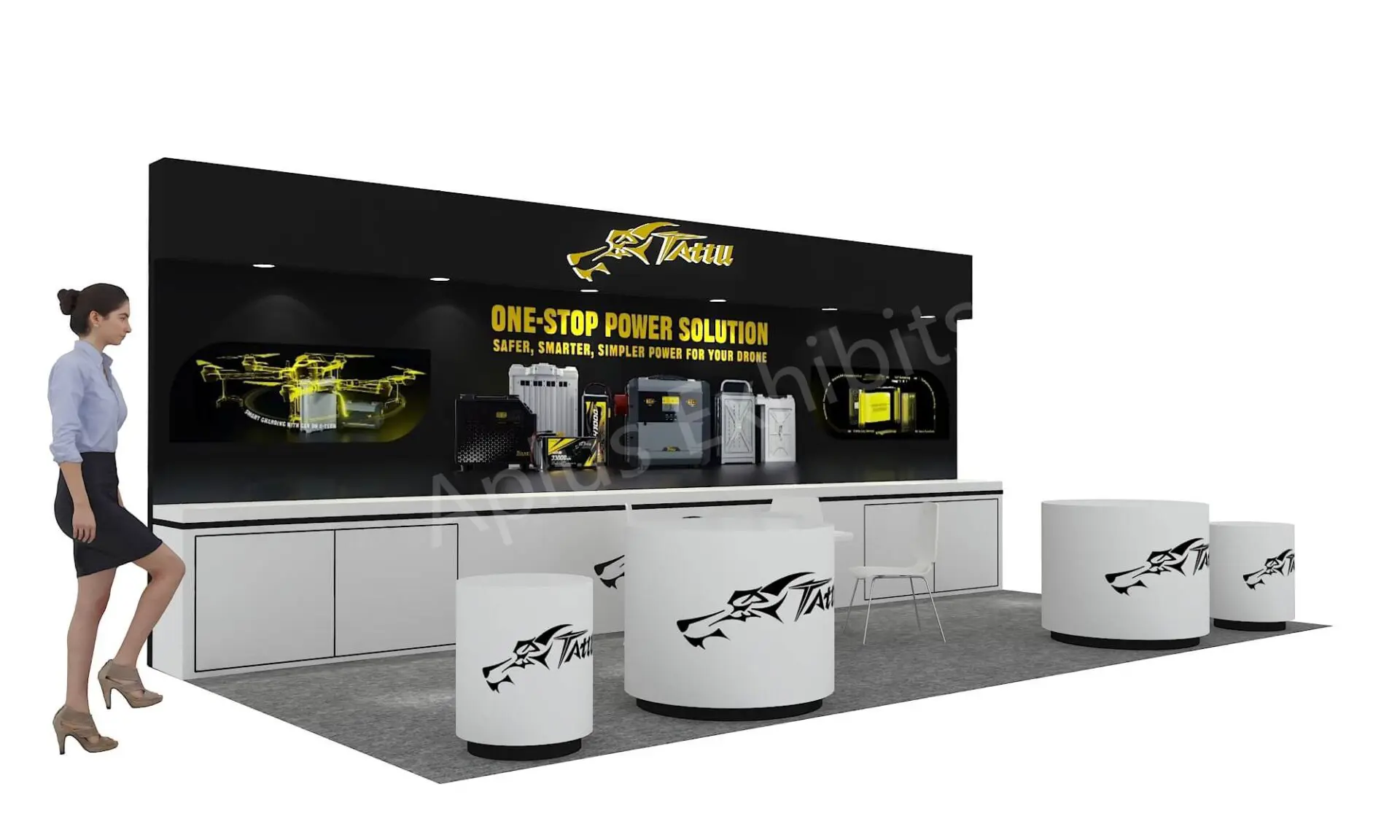 Aplus Exhibits presents a premium 10′ x 20′ trade show booth for Grepow at XPO 2025.