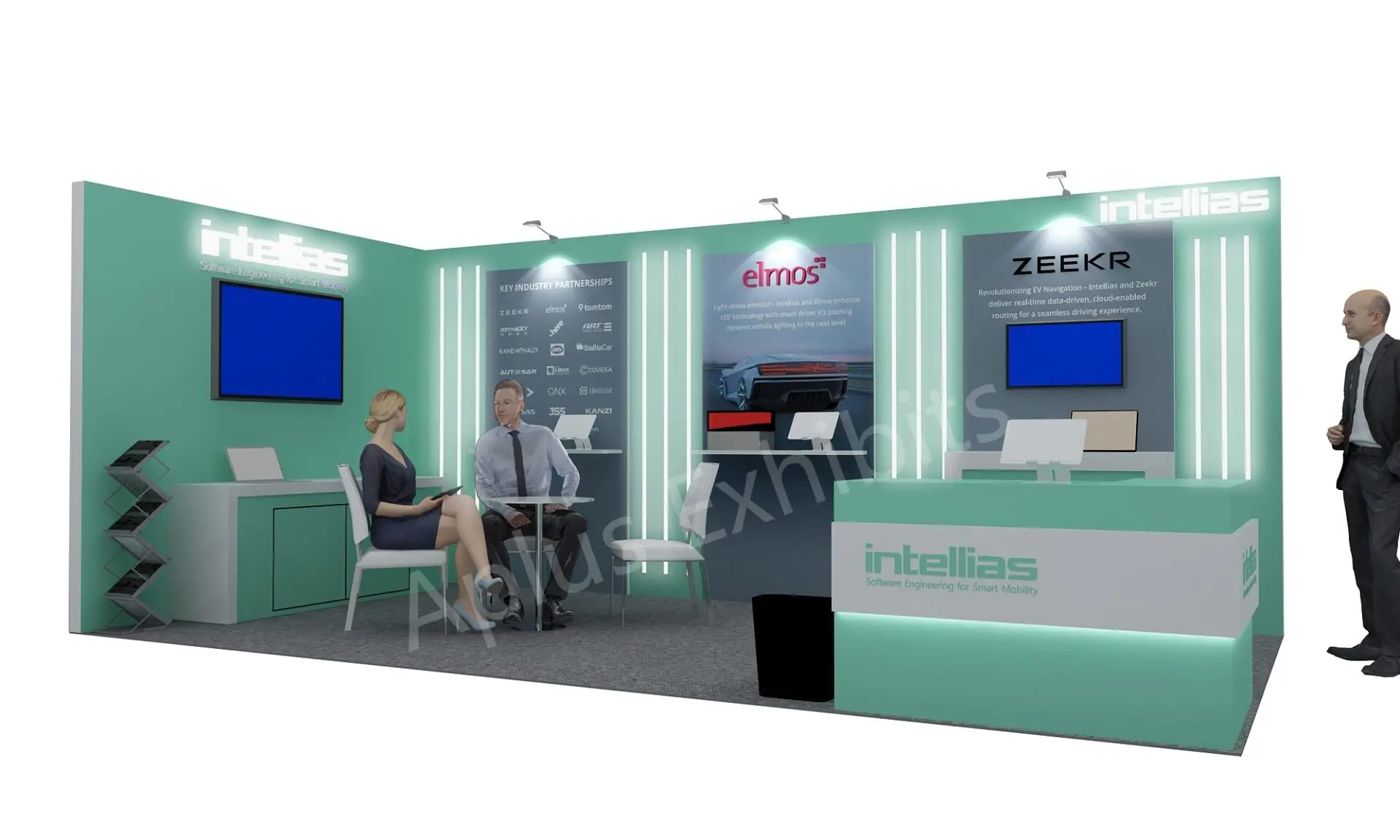 Aplus Exhibits presents a premium 10′ x 20′ trade show booth for Intellias at CES 2025.