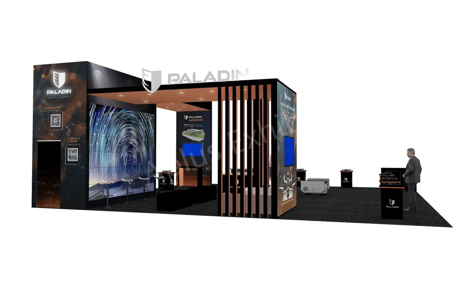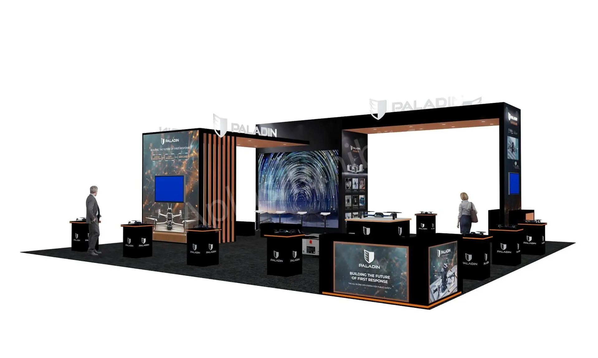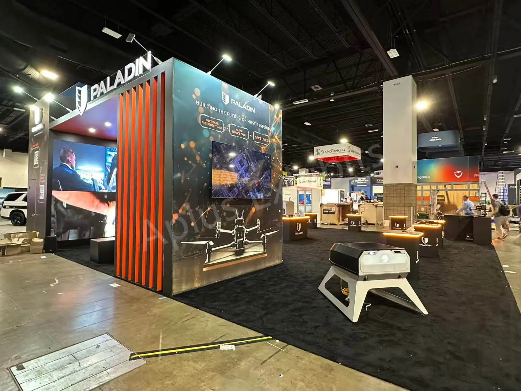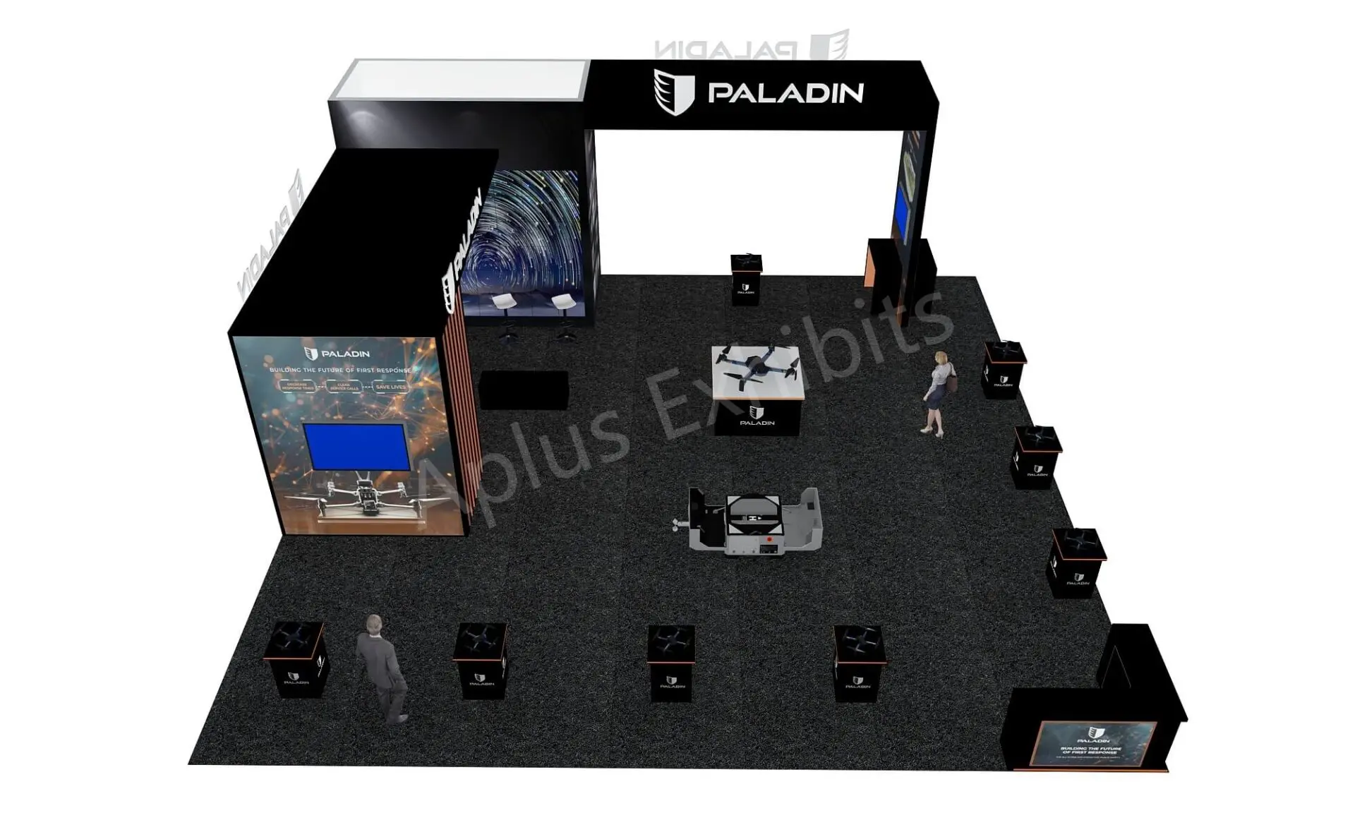 Aplus Exhibits presents a premium 40’x40′ trade show booth for Paladin Drones at IACP 2025.