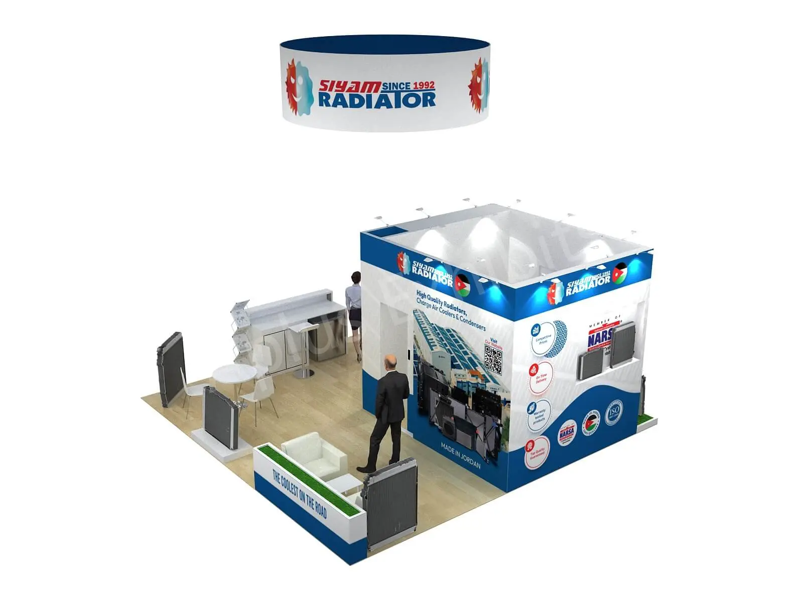 Aplus Exhibits presents a premium 20′ x 20′ trade show booth for Siyam Radiator at AAPEX 2025.