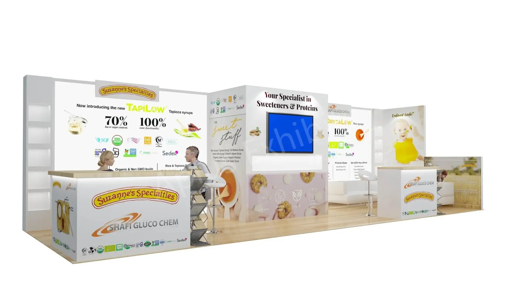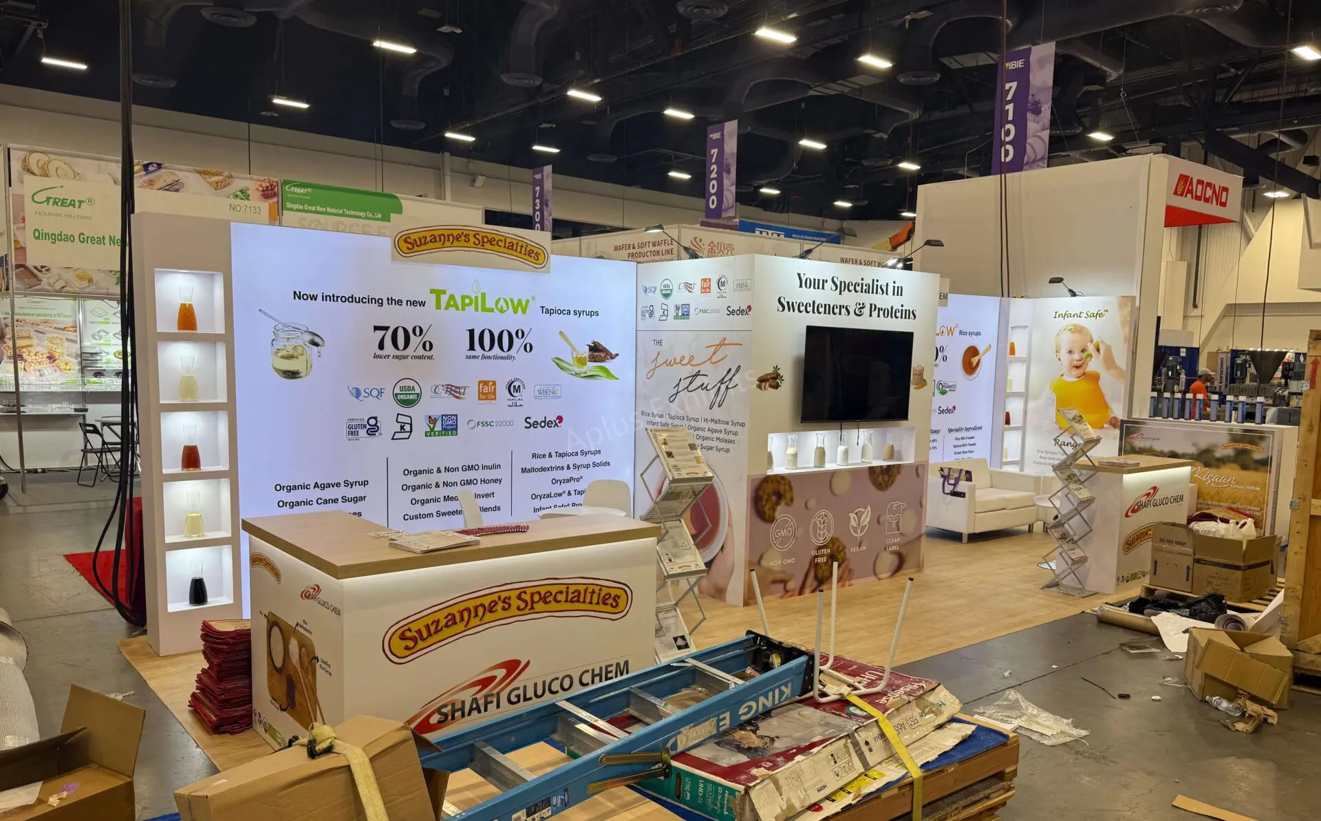 Aplus Exhibits presents a premium 10′ x 30′ trade show booth for Suzanne’s at IBIE 2025.